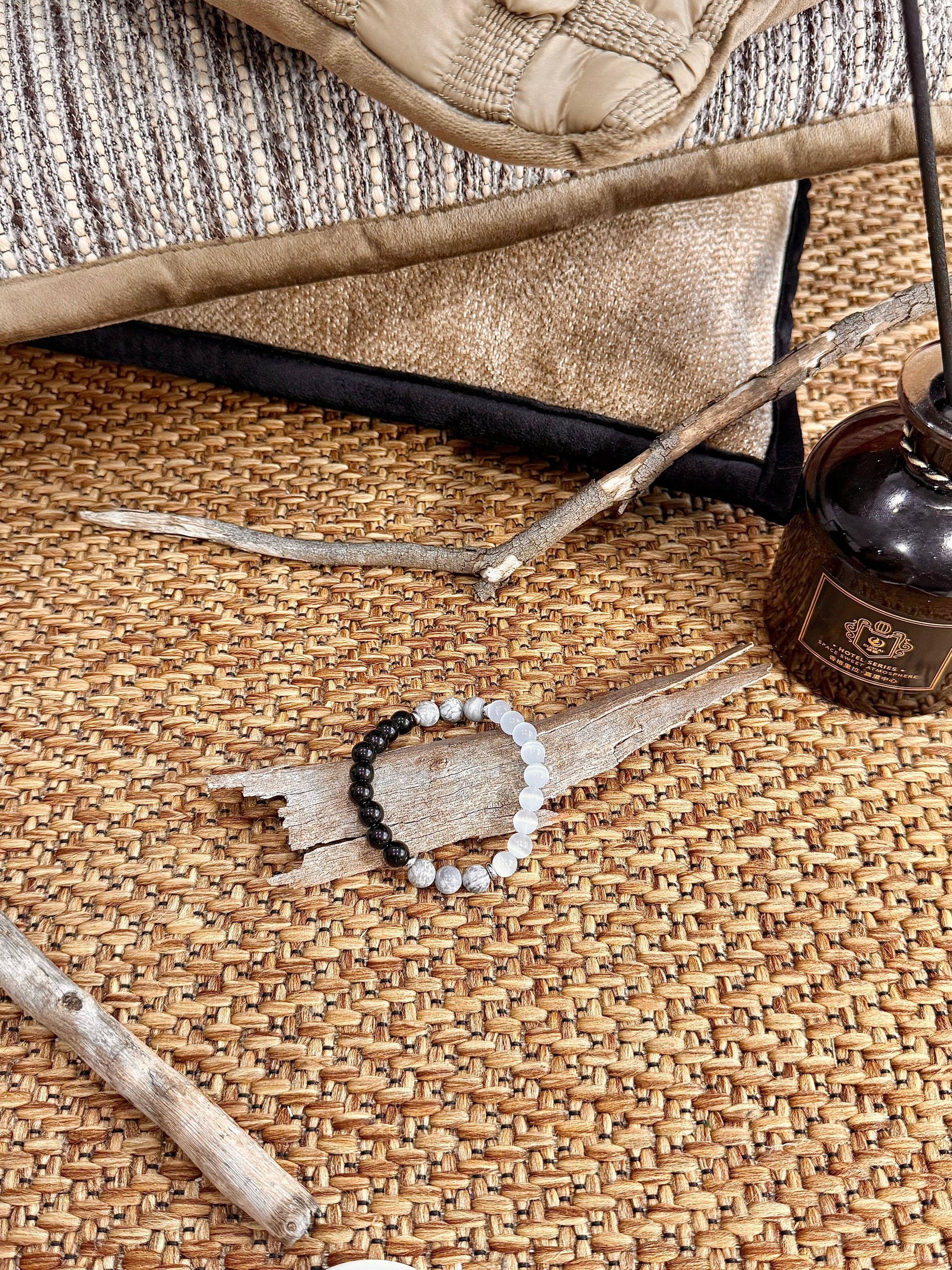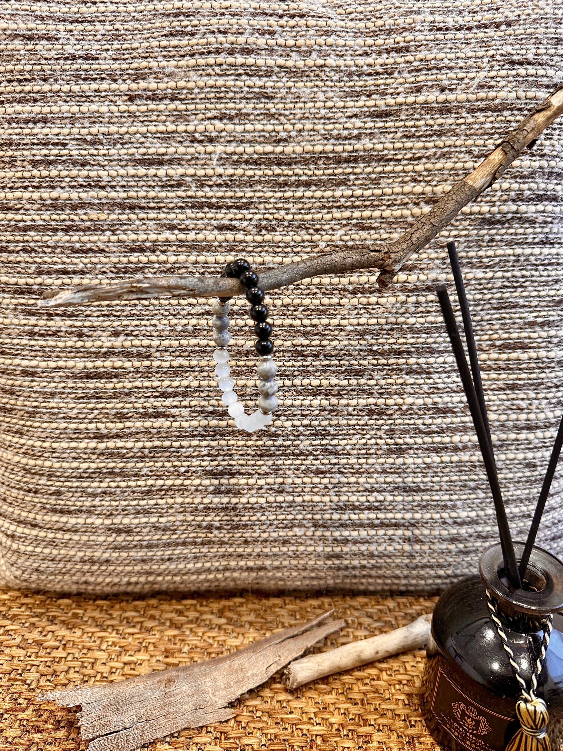 This handcrafted natural stone bracelet is inspired by traditions that use gemstones to promote grounding and gentle protection. Thought to help clear negative vibes and support a calm, balanced mindset, it’s perfect for adding a mindful ritual to your day. Made with carefully selected natural stone beads, including moonstone, labradorite and obsidian, each bracelet is unique, showcasing subtle natural variations in color and pattern.